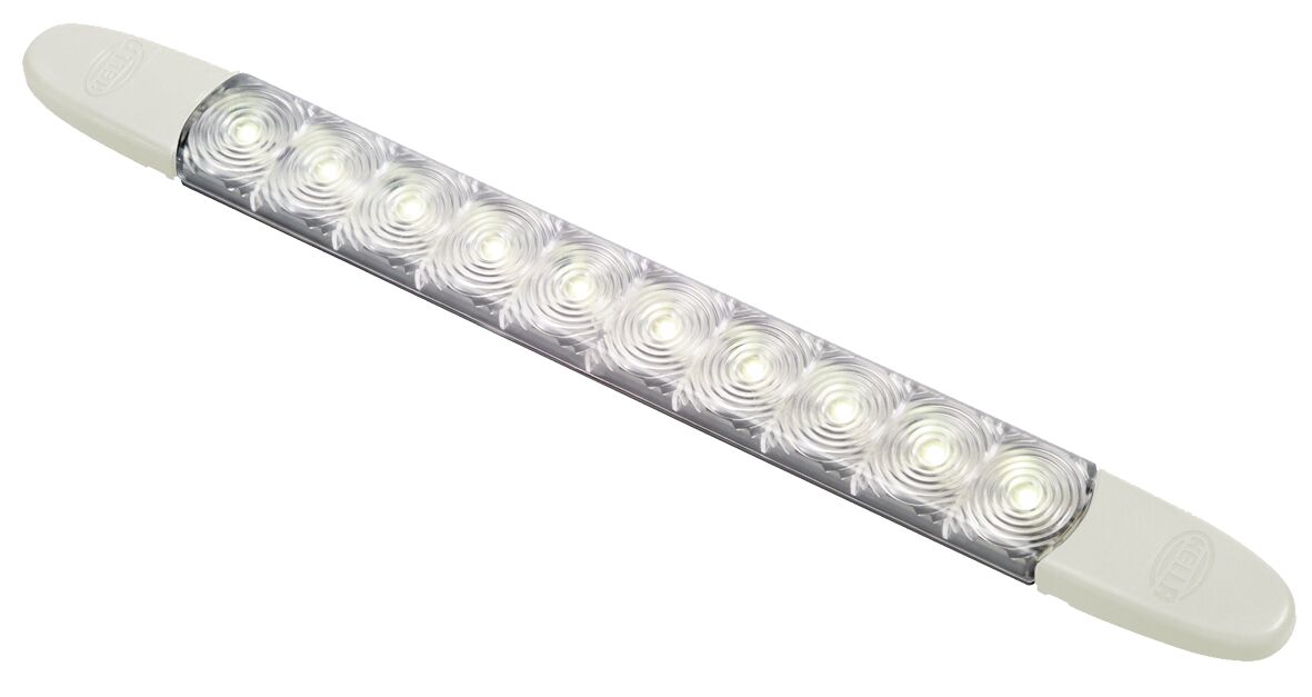 Pinta-asennettava valkoinen LED -valo, joka soveltuu sekä sisä- että ulkokäyttöön, valo kestää hyvin lämpöä, tärinää ja iskuja joten se soveltuu hyvin myös<br />konehuoneen valaistukseen, valo on täysin vesitiivis (IP6K9), jännite 12V (virrankulutus 0,16A/12 V)