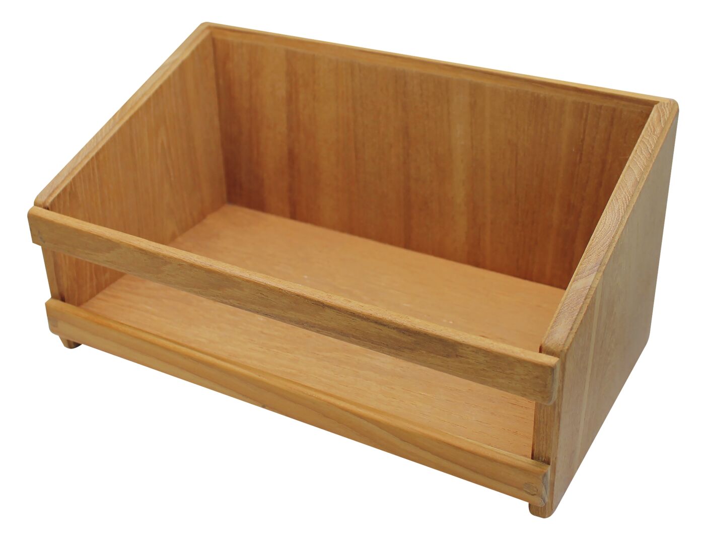 Tiikkisen CD-levylaatikon koko 275 x 110 x 120 mm.