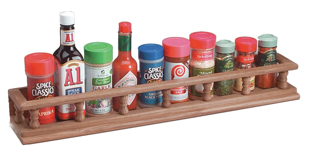 Tiikkinen maustehylly pinnakaiteella, koko 600 x 70 x 100 mm.