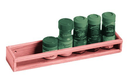Tiikkinen maustehylly suoralla listalla, koko 330 x 50 x 80 mm.