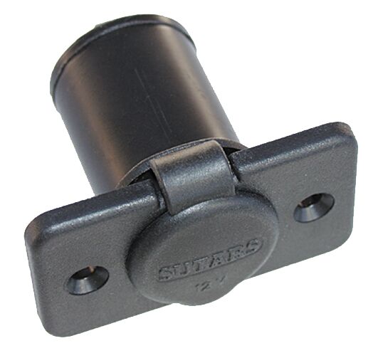 Tupakansytytin pistoke mustaa muovia. Asennus kahdella ruuvilla, upotetaan Ø 27 mm:n reikään. Ruuvinreikien välinen etäisyys 40 mm. Maksimi virta 16 A.