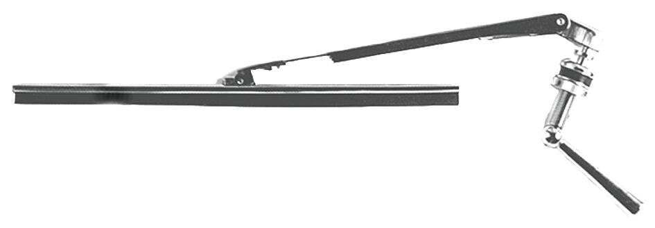 Käsikäyttöinen. Akseli ja kahva messinki/kromattu. Varsi ruostumatonta terästä. Varsi säädettävissä. Suora sulka. Sulan pituus 28 cm.
