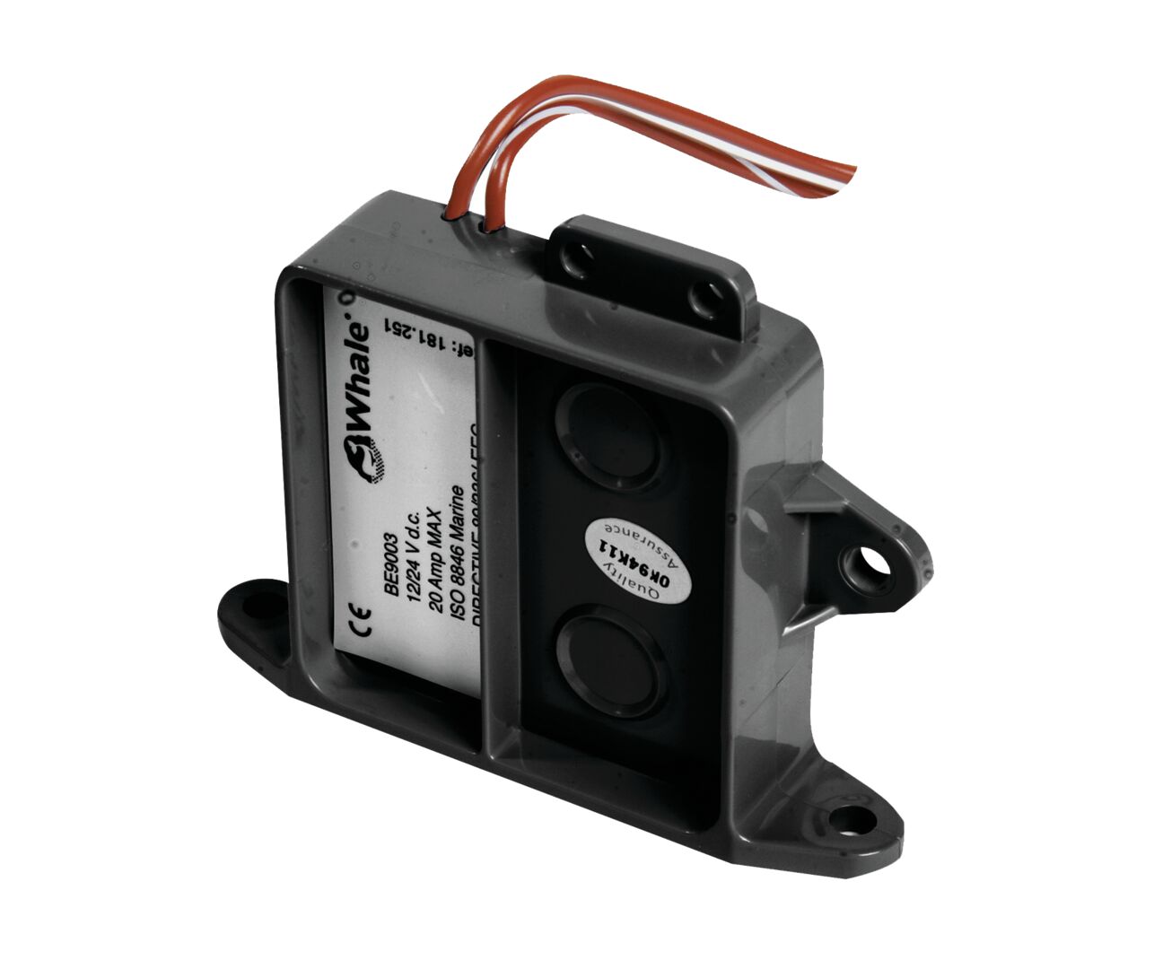 Elektroninen tyhjennyspumpun automaattikatkaisin, ei liikkuvia osia, toimii sekä 12 V että 24 V, maksimi kuormitus 20A.