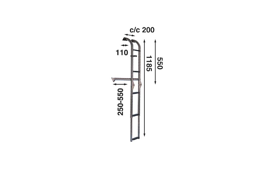Kulmakiinnikkeet ja säädettävät kiinnitysvarret mahdollistavat tikkaiden asennuksen lähes kaikkiin jyrkkiin perälautoihin ja kiipeämisen pystysuorassa. Viisi tasaista askellautaa, joista alin teleskooppinen pituuden säätämiseksi kätevästi. Taitettava pohjaosa, joka pystyasennossa kiinnitetään muovikiinnikkeillä ja on helppo nostaa vedestä. Kiinnikkeet sisältyvät.<br /> <br />Valmistettu haponkestävästä AiSi 316 ruostumattomasta teräksestä ja viimeistelty käsin kiillottamalla.<br /><br />Pituus: 1185 mm<br />Pituus, taitettuna: 550 mm <br />Leveys: 210 mm<br />Leveys, c/c: 200 mm <br />Syvyys: 470 mm<br />säädettävä kiinnitysvarsi: kyllä<br />Pituus, kiinnitysvarsi: 290-350 <br />Askelta: 5<br />Taittuva: Teleskooppi/kokoontaittuva
