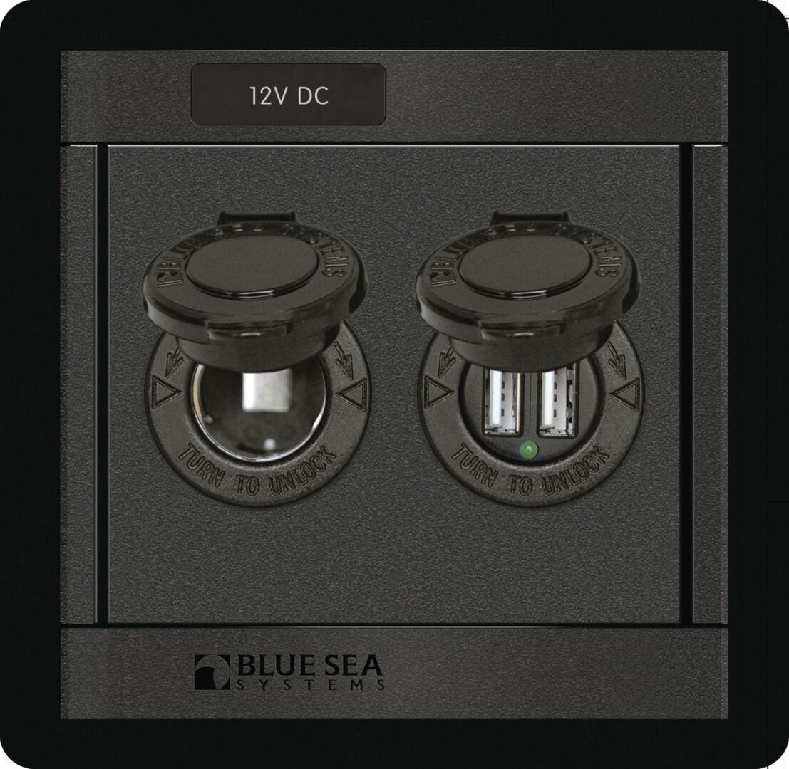 360 PANEELI - 12V DC PISTORASIA JA KAKSOIS USB-LATURI Pistorasian ja kahden USB-latausliittimen yhdistelmä. Kaksois-USB-kanta tuottaa yhteensä 2.1 A latausvirtaa, mikä riittää hyvin älypuhelimien ja tablettien lataamiseen mukaanlukien Apple™ iPhone- ja iPad-tuotteet. 12V pistorasia soveltuu erinomaisesti 12 V laitteiden akkujen lataamiseen tai suoraan virransyöttöön, voit esimerkiksi liittää valonheittimen liittimeen. Moduli on saatavissa itsenäisenä paneeliosana (tuotenumero 1478) tai osana Custom 360 Panel -tuoteperhettä.