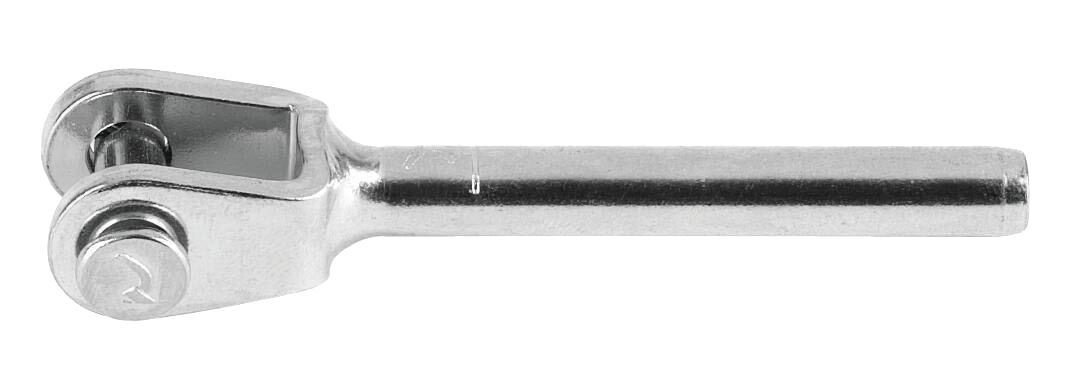 Haarukkapääte on ruostumatonta terästä (AISI 316), kiinnitetään vaijeriin puristamalla, vaijerin Ø 5 mm, tapin Ø 8 mm