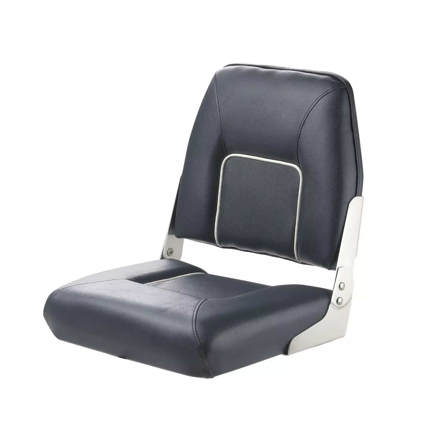 Veneistuin First Mate, taittuvalla selkänojalla. Sininen, valkoisilla saumoilla. Kiinnityshihna alhaalla pysymiseen, kiinnitys alapuolelta ruuveilla, ruuvit mukana.