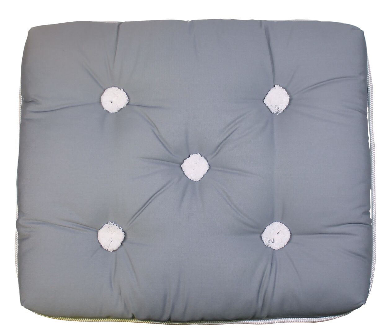 Kapokkitäytteinen, kelluva. Kyllästetty puuvillakangas ommeltu polyesterilangalla. 5 mm tartuntaköysi ympärillä. 1-osainen. Tummanharmaa. Koko n. 47 x 37 x 6 cm.