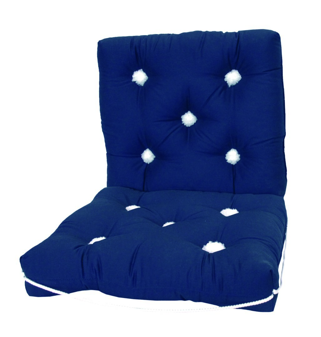 Kapokkitäytteinen, kelluva. Kyllästetty puuvillakangas ommeltu polyesterilangalla. 5 mm tartuntaköysi ympärillä. 2-osainen. Pysyy paremmin paikoillaan kuin kaksi erillistä tyynyä. Tummansininen. Koko n. 47 x 74 x 6 cm.