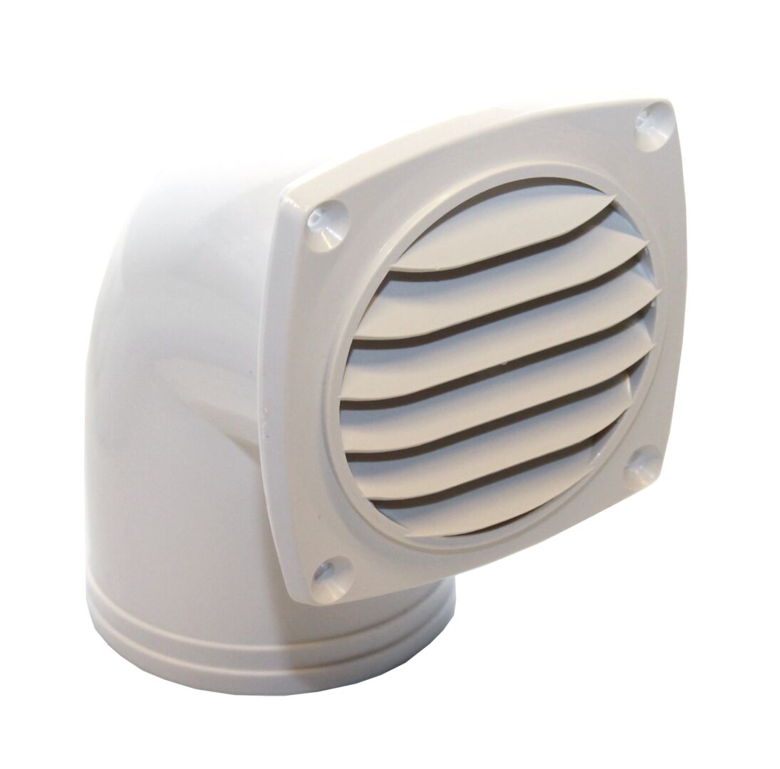 Ilmanottoliitin venttiiliritilällä, 90° kulma, 3' letkulle. ABS-muovia. Ritilän koko 94 x 94 mm. Sopivat muovisiin venttiiliritilöihin suoraan kiinnitettäväksi. Ritilämallit ovat 9515028110 (musta) , 951528112 (valkoinen).