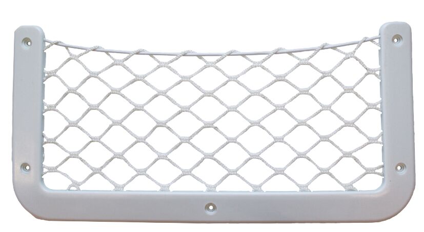 Valkoinen verkkotasku, mitat 180 x 365 mm.