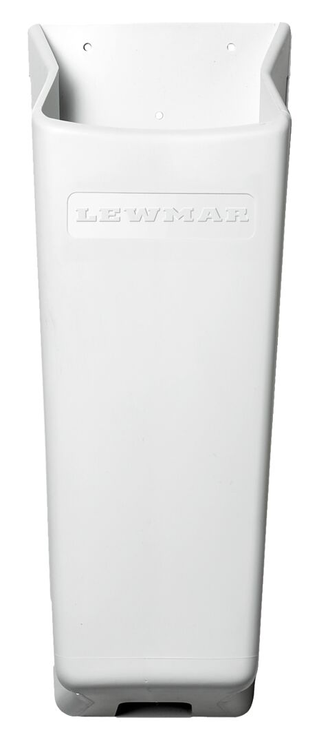 Lewmar-vinssikammen kotelo. UV-säteilyä hyvin kestävää valkoista PVC-muovia.