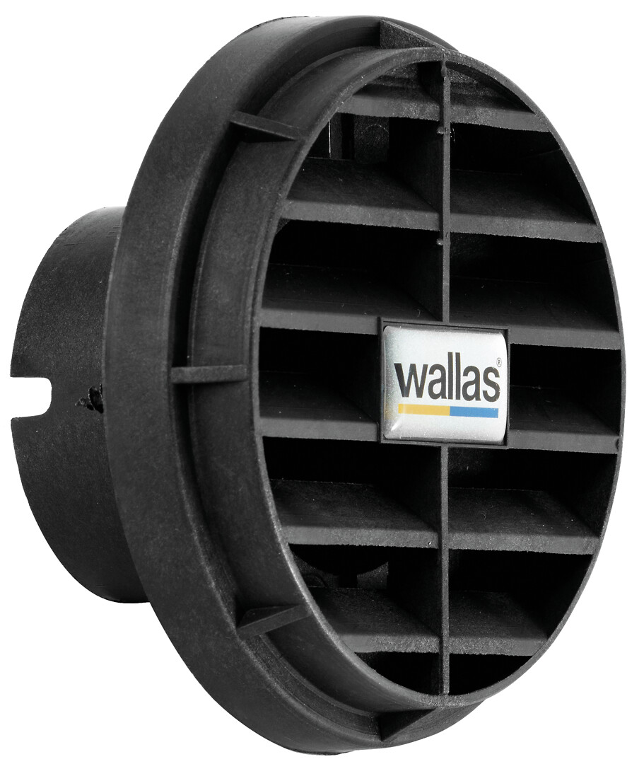 Vahvasta komposiittimateriaalista valmistettu ja UV-suojattu lämpimän ilman ulospuhallusritilä 75 mm ilmaletkulle. Sulkuläppä sisällä, jotta sulkeminen ei tapahdu vahingossa. Väri: Musta