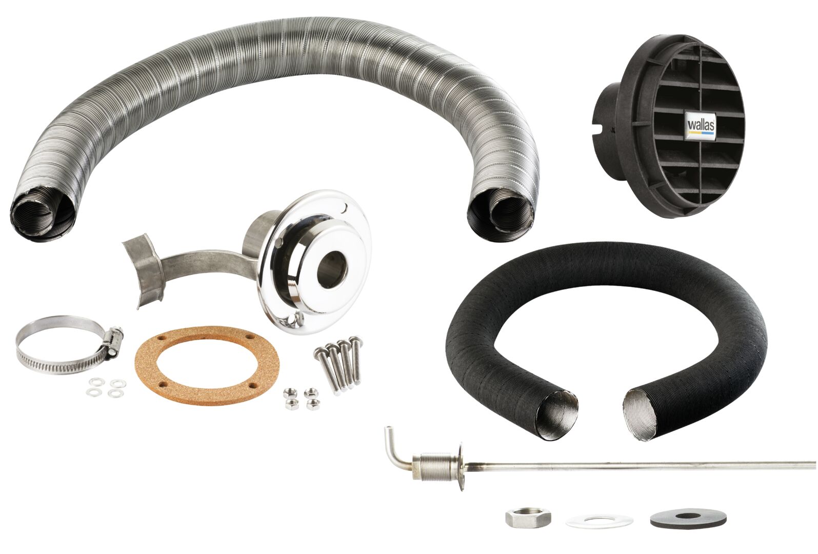 Sarja sisältää:<br />9515009185 2448 Savukaasuletku Ø 28/45 RST/2467 1,5 m<br />9515009186 2467 Savutorvi 28/45 mm runkoläpivienti <br />9515009198 3410 Lämminilmaletku Ø 75 mm 6,5 m<br />9515009202 3411 Ulospuhallusritilä Ø 75 mm 2 kpl<br />9515009363 30011 Liitäntäsarja kiinteään PA tankkiin (max. syvyys 1 m)