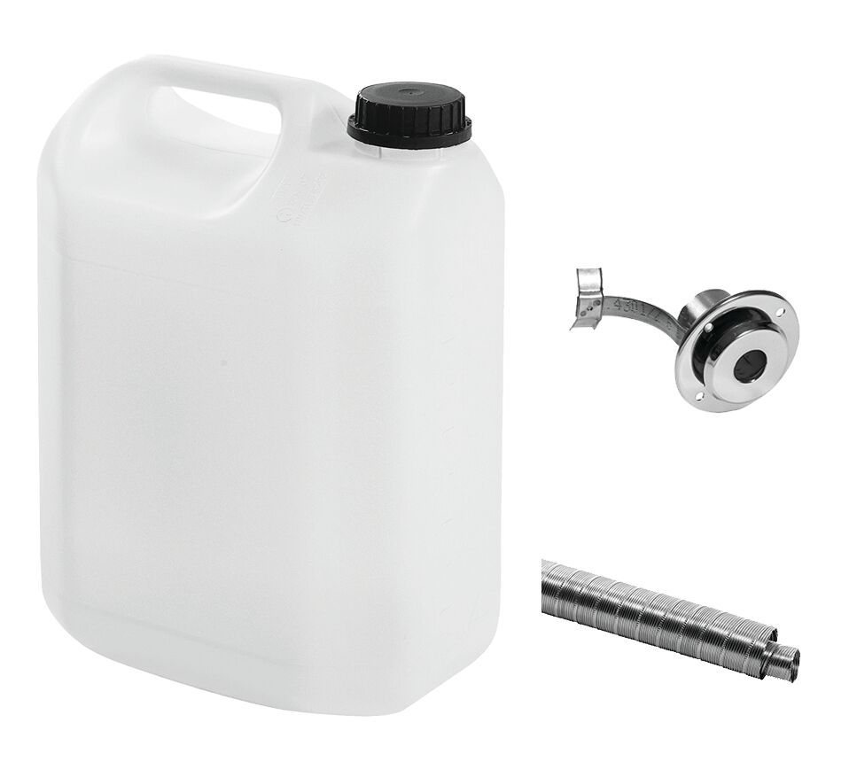 Sarja sisältää:<br />9515009185E 2448 Savukaasuletku Ø 28/45 RST/2467 0,7 m<br />9515009186E 2467 Savutorvi 28/45 mm runkoläpivienti 1 kpl<br />9515009176E 2024 Polttoainesäiliö 5 l 1 kpl<br /><br />